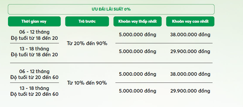 • Thời hạn vay linh hoạt: Từ 6 đến 18 tháng