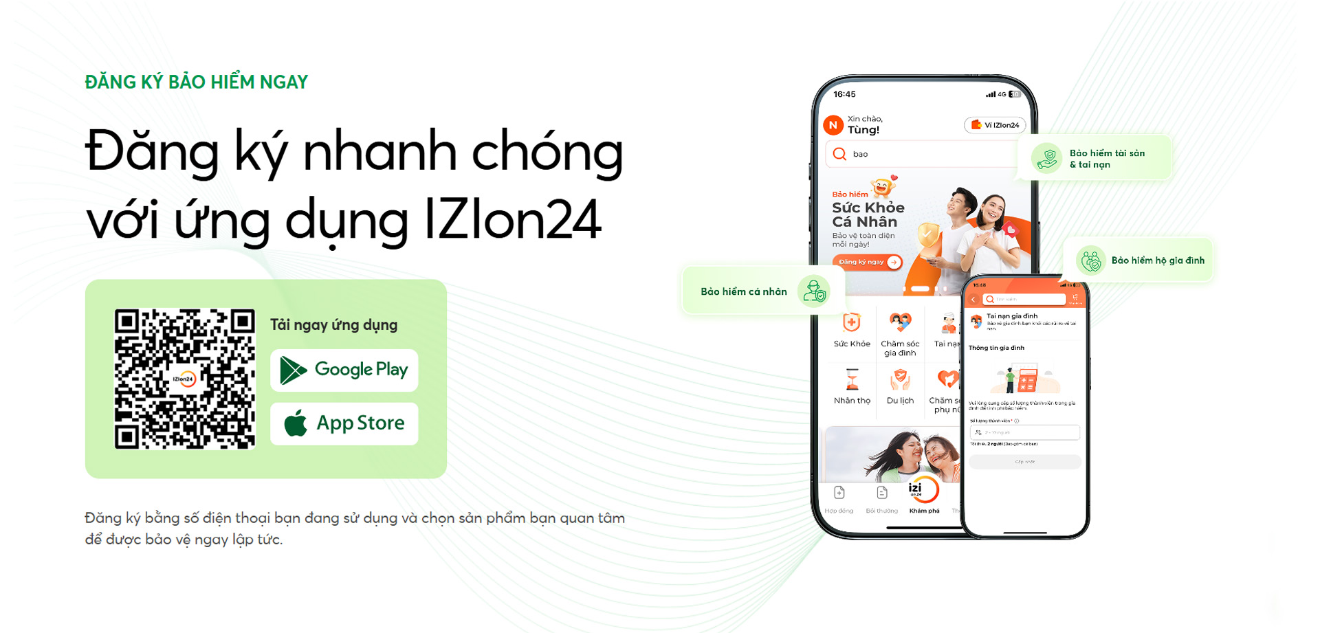 - Chủ động tìm hiểu, đăng ký thêm: Tải ứng dụng IZIon24 để xem thông tin, được tư vấn hoặc đăng ký các sản phẩm bảo hiểm khác (tùy chính sách từng thời kỳ)